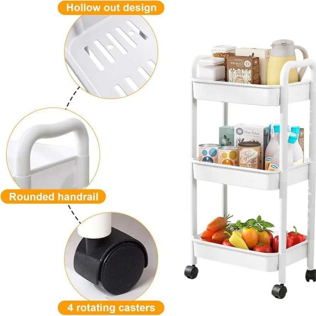 3-Tier Thick Pipe Rolling Utility Cart – Mobile Storage Trolley with Wheels
